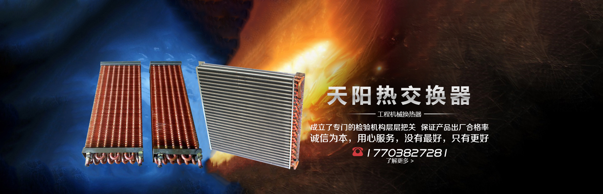 輝縣天陽電器有限責(zé)任公司位于肥沃的中原河南省輝縣市學(xué)院路中段工業(yè)集聚區(qū)興業(yè)園3號(hào)廠房,以制冷設(shè)備用冷凝器,蒸發(fā)器,熱交換器為主。主要材料為銅管鋁翅片,銅管銅翅片,鋁管鋁翅片。廣泛應(yīng)用于冰箱冰柜,制冷設(shè)備,暖通設(shè)備,空調(diào),自動(dòng)售貨機(jī),冷干機(jī),超市立風(fēng)柜,冷藏車,烘干機(jī)等產(chǎn)品領(lǐng)域。  公司自1998年成立以來,始終堅(jiān)持:“科技造就產(chǎn)業(yè)、質(zhì)量成就信譽(yù)、誠信鑄就輝煌”的質(zhì)量方針,從產(chǎn)品拓展上堅(jiān)持“人無我有,人有我優(yōu),人優(yōu)我特的”經(jīng)營理念,25年來,從1998年開始供應(yīng)河南冰熊集團(tuán)下屬的冷柜廠,制冰機(jī)廠各種冷凝器;2003年之后,原冰熊集團(tuán)的精英志士開始在全國各地發(fā)展,所到之處依托我公司供貨,以致于多家目前已具行業(yè)中佼佼者的公司,從而建立了如凱雪公司,兆邦公司、凌云公司、海寶公司、正雪公司、上海忠云、山東德萊維等幾十余家公司在草創(chuàng)時(shí)期的啟蒙供貨商,友好共贏長達(dá)十余年,成為我國制冷行業(yè)的供應(yīng)商。以致在2015年初雙匯集團(tuán)面向社會(huì)的招標(biāo)書中指名要我公司冷凝器、蒸發(fā)器指定產(chǎn)品供應(yīng)商