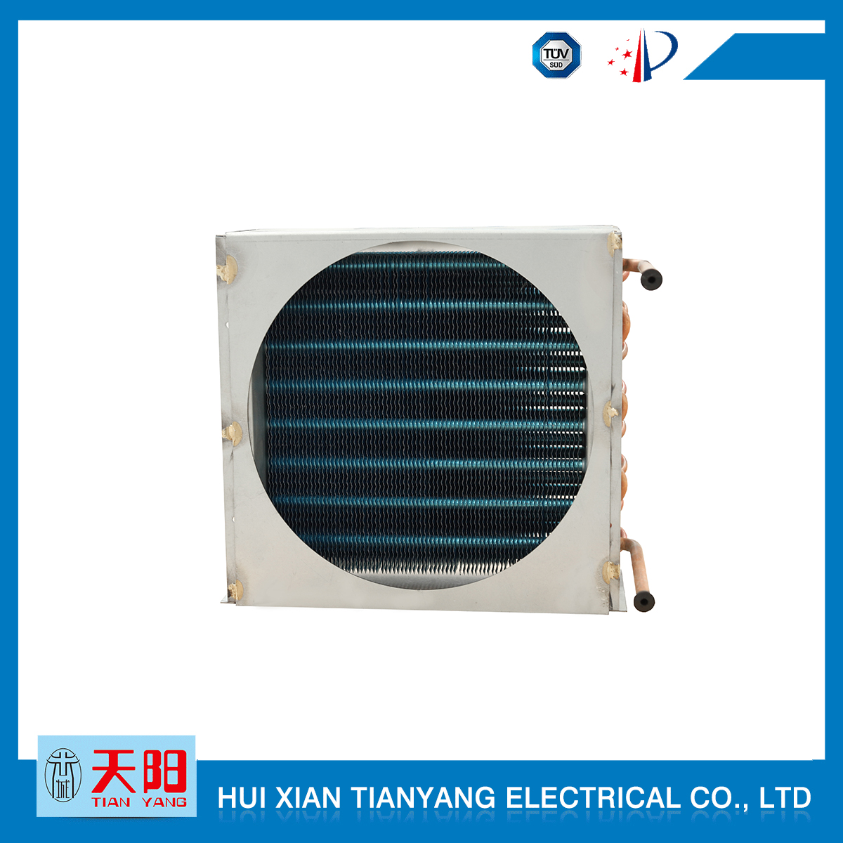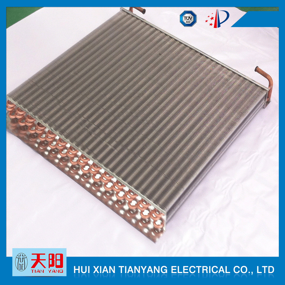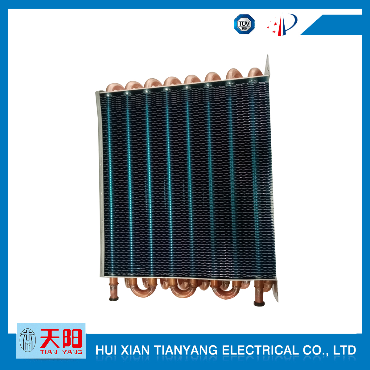 輝縣天陽電器有限責(zé)任公司位于肥沃的中原河南省輝縣市學(xué)院路中段工業(yè)集聚區(qū)興業(yè)園3號(hào)廠房,以制冷設(shè)備用冷凝器,蒸發(fā)器,熱交換器為主。主要材料為銅管鋁翅片,銅管銅翅片,鋁管鋁翅片。廣泛應(yīng)用于冰箱冰柜,制冷設(shè)備,暖通設(shè)備,空調(diào),自動(dòng)售貨機(jī),冷干機(jī),超市立風(fēng)柜,冷藏車,烘干機(jī)等產(chǎn)品領(lǐng)域。  公司自1998年成立以來,始終堅(jiān)持:“科技造就產(chǎn)業(yè)、質(zhì)量成就信譽(yù)、誠信鑄就輝煌”的質(zhì)量方針,從產(chǎn)品拓展上堅(jiān)持“人無我有,人有我優(yōu),人優(yōu)我特的”經(jīng)營理念,25年來,從1998年開始供應(yīng)河南冰熊集團(tuán)下屬的冷柜廠,制冰機(jī)廠各種冷凝器;2003年之后,原冰熊集團(tuán)的精英志士開始在全國各地發(fā)展,所到之處依托我公司供貨,以致于多家目前已具行業(yè)中佼佼者的公司,從而建立了如凱雪公司,兆邦公司、凌云公司、海寶公司、正雪公司、上海忠云、山東德萊維等幾十余家公司在草創(chuàng)時(shí)期的啟蒙供貨商,友好共贏長達(dá)十余年,成為我國制冷行業(yè)的供應(yīng)商。以致在2015年初雙匯集團(tuán)面向社會(huì)的招標(biāo)書中指名要我公司冷凝器、蒸發(fā)器指定產(chǎn)品供應(yīng)商