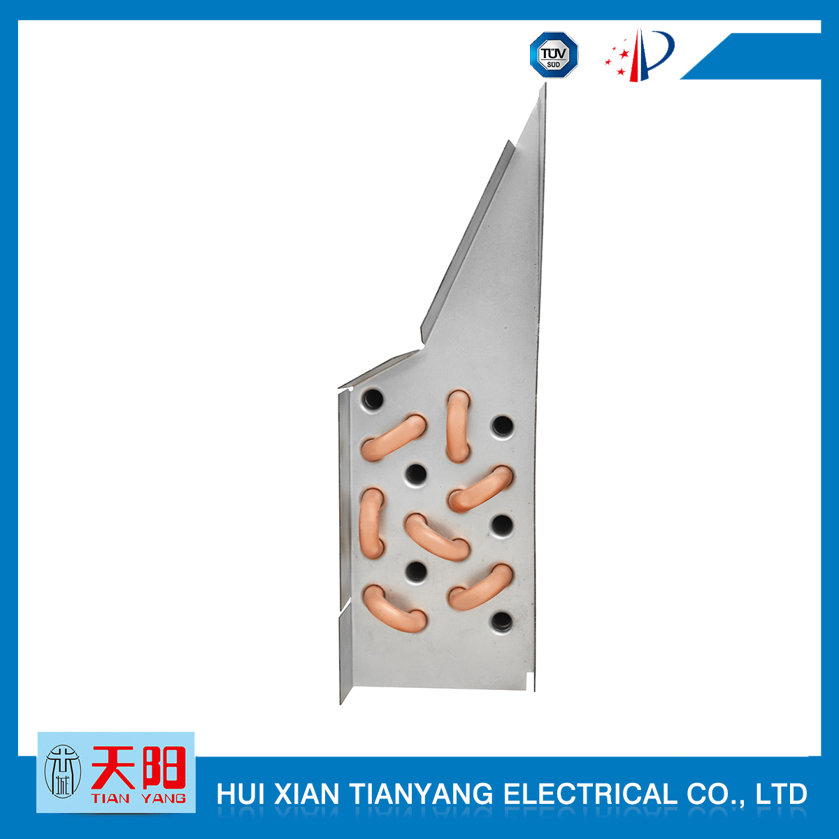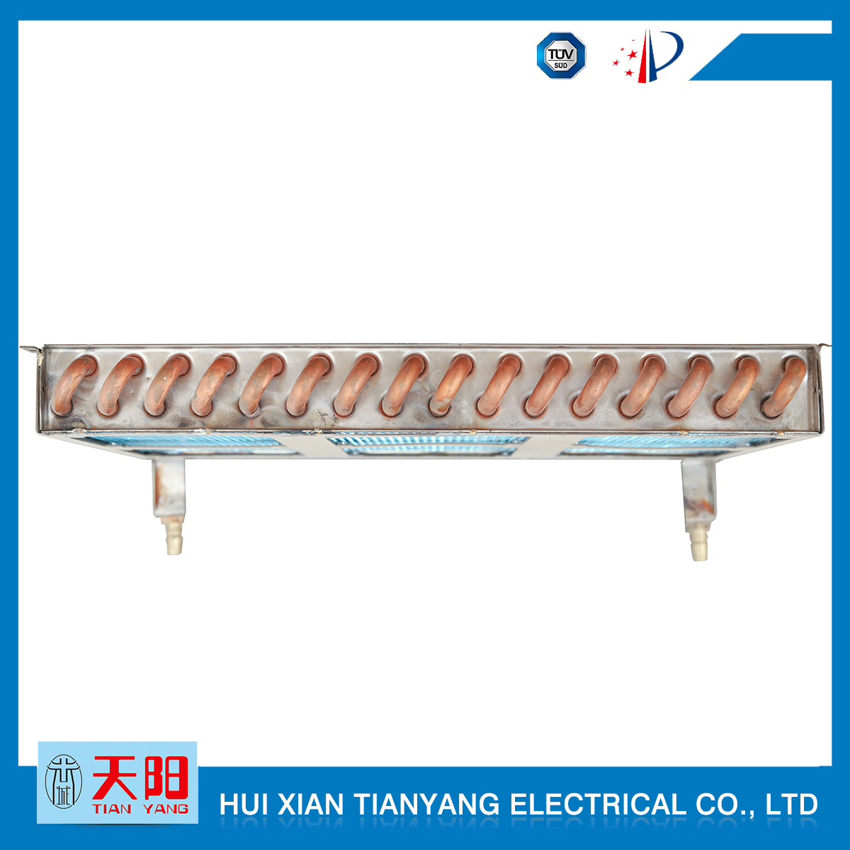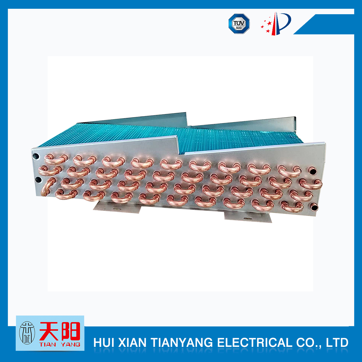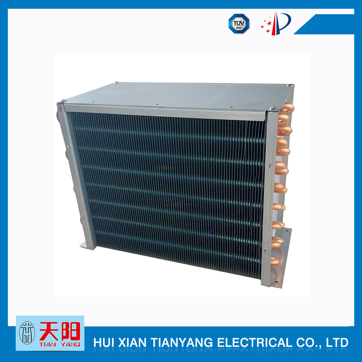 輝縣天陽電器有限責(zé)任公司位于肥沃的中原河南省輝縣市學(xué)院路中段工業(yè)集聚區(qū)興業(yè)園3號(hào)廠房,以制冷設(shè)備用冷凝器,蒸發(fā)器,熱交換器為主。主要材料為銅管鋁翅片,銅管銅翅片,鋁管鋁翅片。廣泛應(yīng)用于冰箱冰柜,制冷設(shè)備,暖通設(shè)備,空調(diào),自動(dòng)售貨機(jī),冷干機(jī),超市立風(fēng)柜,冷藏車,烘干機(jī)等產(chǎn)品領(lǐng)域。  公司自1998年成立以來,始終堅(jiān)持:“科技造就產(chǎn)業(yè)、質(zhì)量成就信譽(yù)、誠信鑄就輝煌”的質(zhì)量方針,從產(chǎn)品拓展上堅(jiān)持“人無我有,人有我優(yōu),人優(yōu)我特的”經(jīng)營理念,25年來,從1998年開始供應(yīng)河南冰熊集團(tuán)下屬的冷柜廠,制冰機(jī)廠各種冷凝器;2003年之后,原冰熊集團(tuán)的精英志士開始在全國各地發(fā)展,所到之處依托我公司供貨,以致于多家目前已具行業(yè)中佼佼者的公司,從而建立了如凱雪公司,兆邦公司、凌云公司、海寶公司、正雪公司、上海忠云、山東德萊維等幾十余家公司在草創(chuàng)時(shí)期的啟蒙供貨商,友好共贏長達(dá)十余年,成為我國制冷行業(yè)的供應(yīng)商。以致在2015年初雙匯集團(tuán)面向社會(huì)的招標(biāo)書中指名要我公司冷凝器、蒸發(fā)器指定產(chǎn)品供應(yīng)商